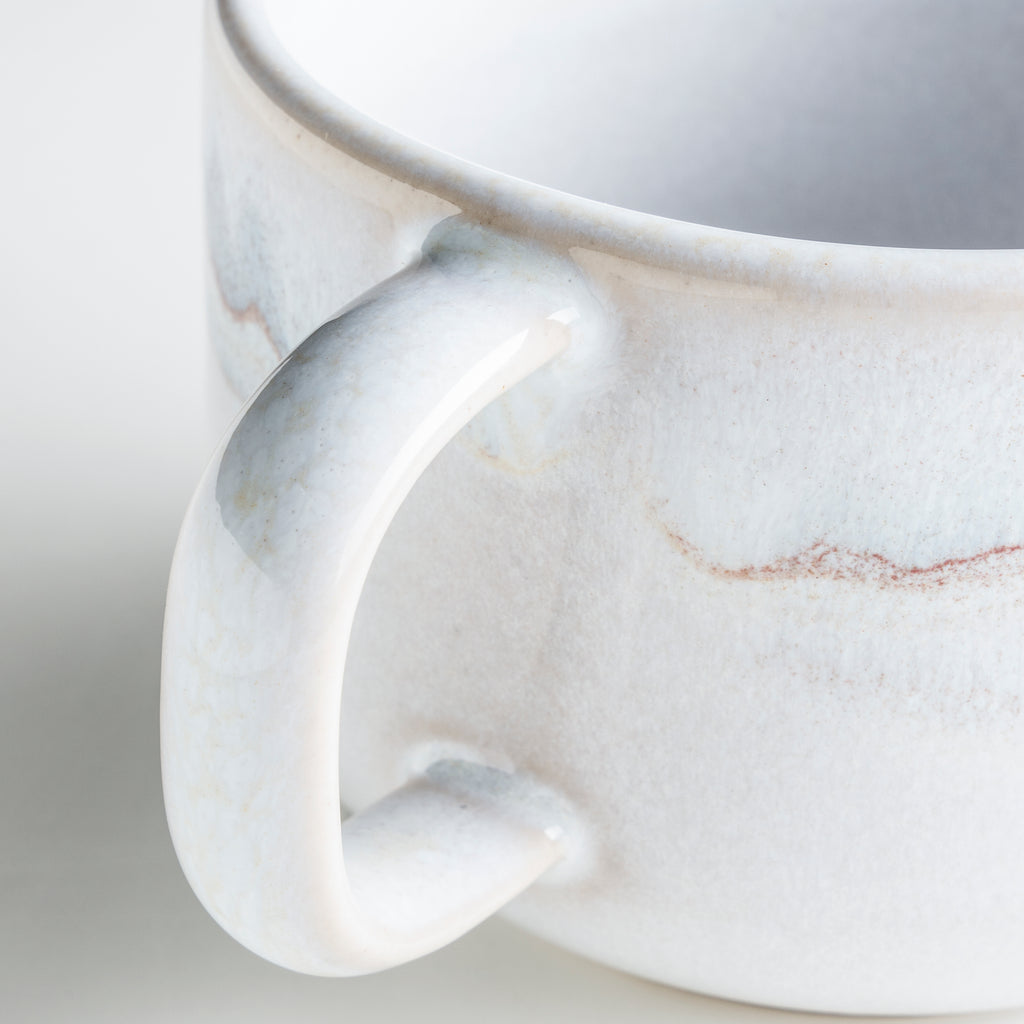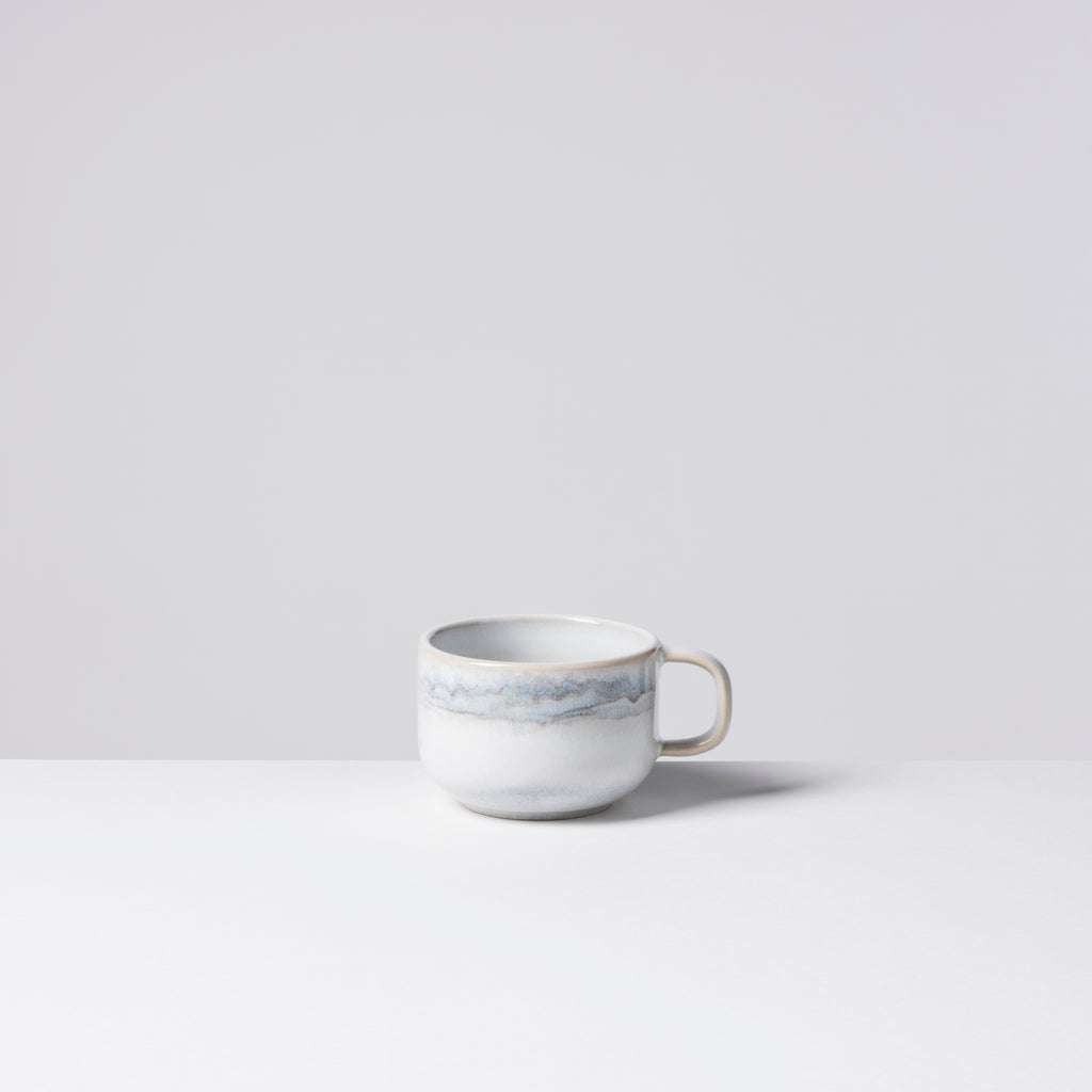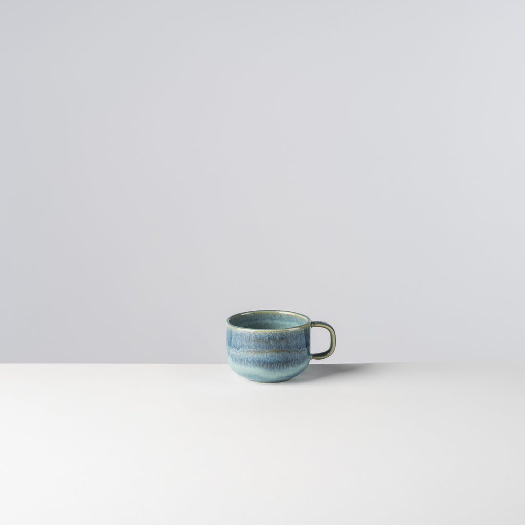 Genießt Du Deine Kaffeespezialität gerne mal mit Milchschaum oder gar Sahnehäubchen? Bist Du der Meinung, durch einen stilechten Henkel passt nur ein Finger? Dann ist unsere Kaffeetasse für dich gemacht - im Gegensatz zum schmaleren, höheren Kaffeebecher lädt sie geradezu zum genussvollen Nippen und Entspannen ein. Wähle Deinen Favoriten aus den zeitlos-schönen Farbvarianten Grün-Blau oder Grau-Weiß und bringe skandinavisches Flair auf den Tisch.