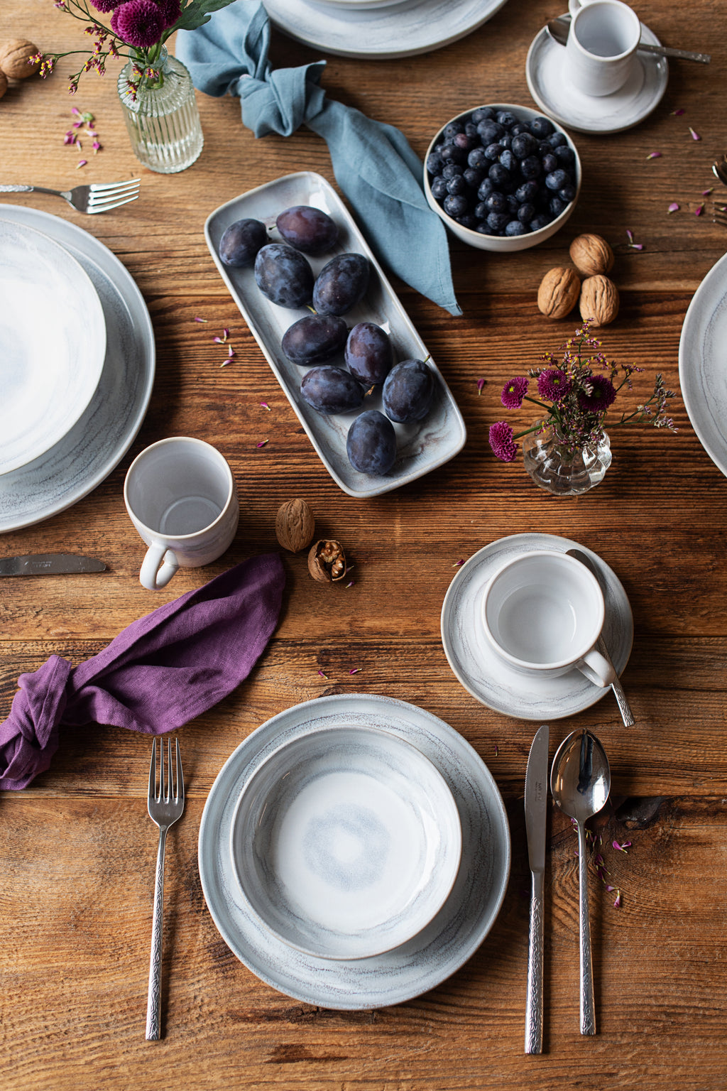 - Glasur: Glänzende Reaktivglasur, die auf jedem Teil etwas anders ausfällt und somit jedes Gipfelstück zu einem Unikat macht. Kleine Unebenheiten, leichte Farbabweichungen und "Unperfektheiten" tragen zum Charme dieser Kollektion bei